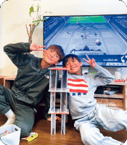 ◀スポーツゲームがたのしかった。かくれんぼもたのしかった。おみあげもたのしかったのとやさしかった。ジェンガがうれしかった。いっしょにねたのがたのしかった。(O. K.さん・小2/埼玉県 ・みじんこF)
