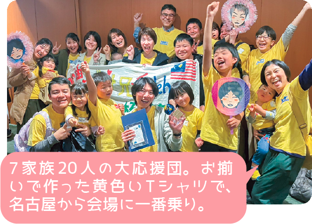 地域の大学とのホームステイ交流で仲良くなったイさん。彼は中華系マレーシア人。私たちからすれば多言語人間!すごいね!となるところ、「私は中途半端なんです」と聞いてびっくり。「半桶水」とは中華系の人の話す中国語をディスることばだそうです。私たちと話すうちに彼も自分の多言語の力に気づいてくれました。最後の賞の発表タイム、小学生も 拳を振り上げて「やったー」と大声を上げました。応援団全員が感動の瞬間でした。(M. C.さん・フェロウ/愛知県・長久手エキメッキF・星ヶ丘ズヴェズダF)